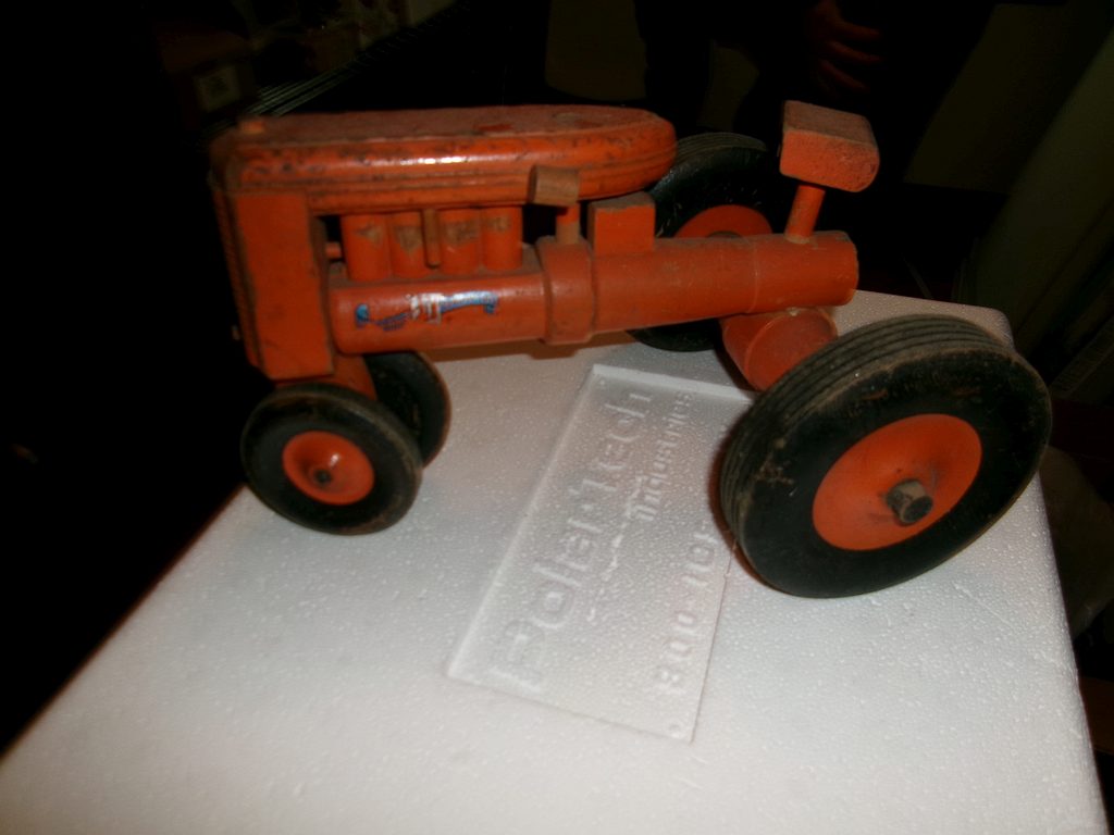 Cast iron tractor; Bow & Arrows; Tonka tractor; IHC baler; Farmall M tractor