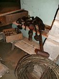 Hay fork; Hatchets; Crimpers; Block plane; Old wrenches & tools; Chains