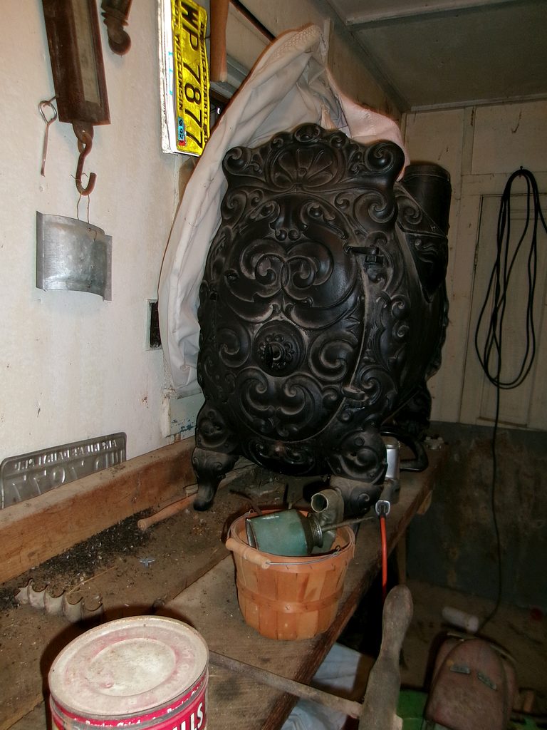 Granite coffee pot; Copper fire ext; Cider press; Canners; Coolers; Blatz tap pull