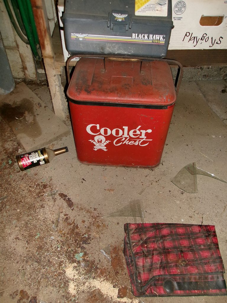 Insulators; 3- Skelly metal cans; Crates; Oil; Old ball gloves; Pony saddle