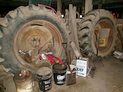 Oliver Superior grain drill on steel wheels; Front mount sprayer w/booms