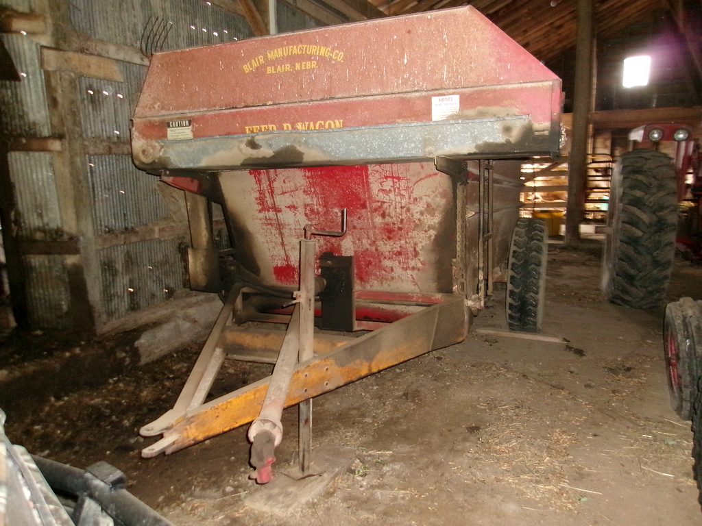 200 gal field sprayer w/fiberglass tank; Blair fence line feeder wagon