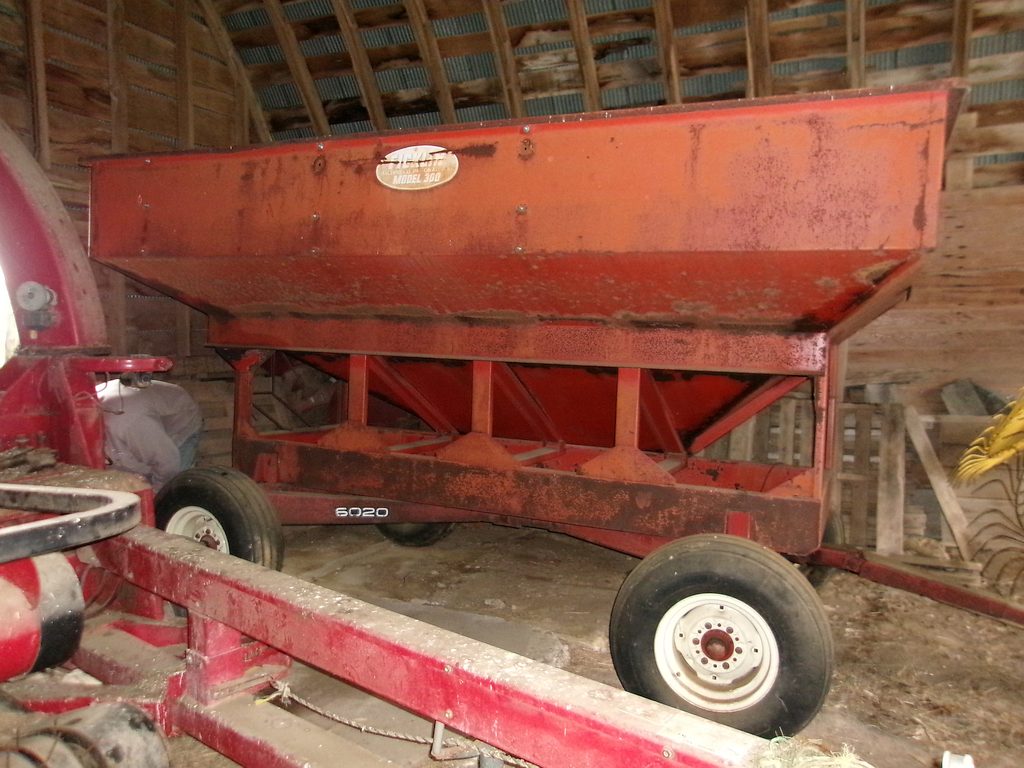 Ficklin 300 bu gravity box w/electric 6020 wagon gear w/float tires & tel tongue